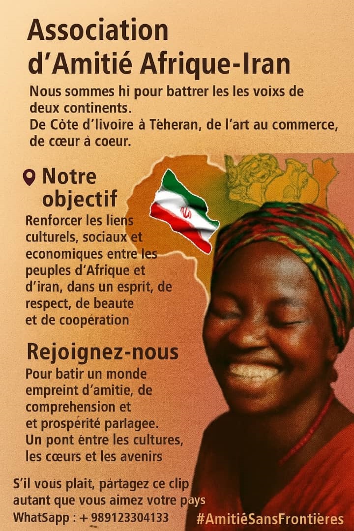 جالب است اشاره کنم بعد از چندین سال که از فعالیت انجمن دوستی ایران و ساحل عاج گذشت؛ سازمان مردم نهاد بینالمللی انجمن دوستی آفریقا_ایران توسط خود آفریقایی های طرفدار انجمن در شهر بندری ابیجان ساحل عاج فعالیت خود را آغاز و بصورت رسمی ثبت و اعلام حضور نمود.