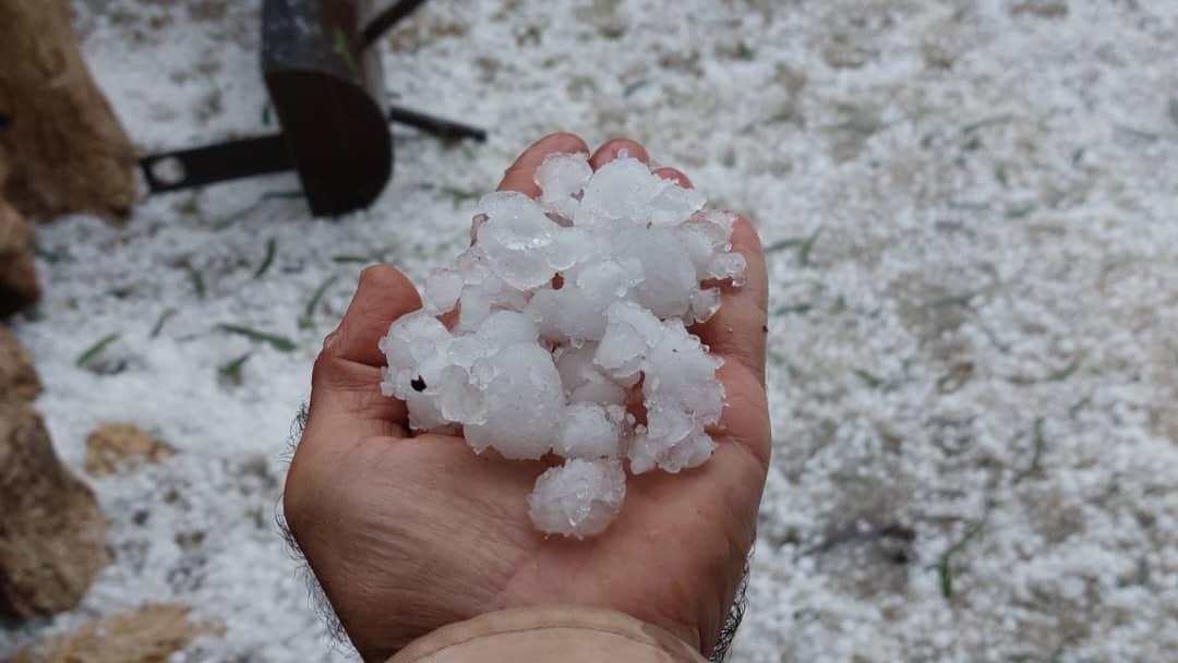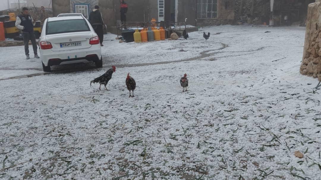 بارش سنگین تگرگ در روستای “الیف” شهرستان کازرون