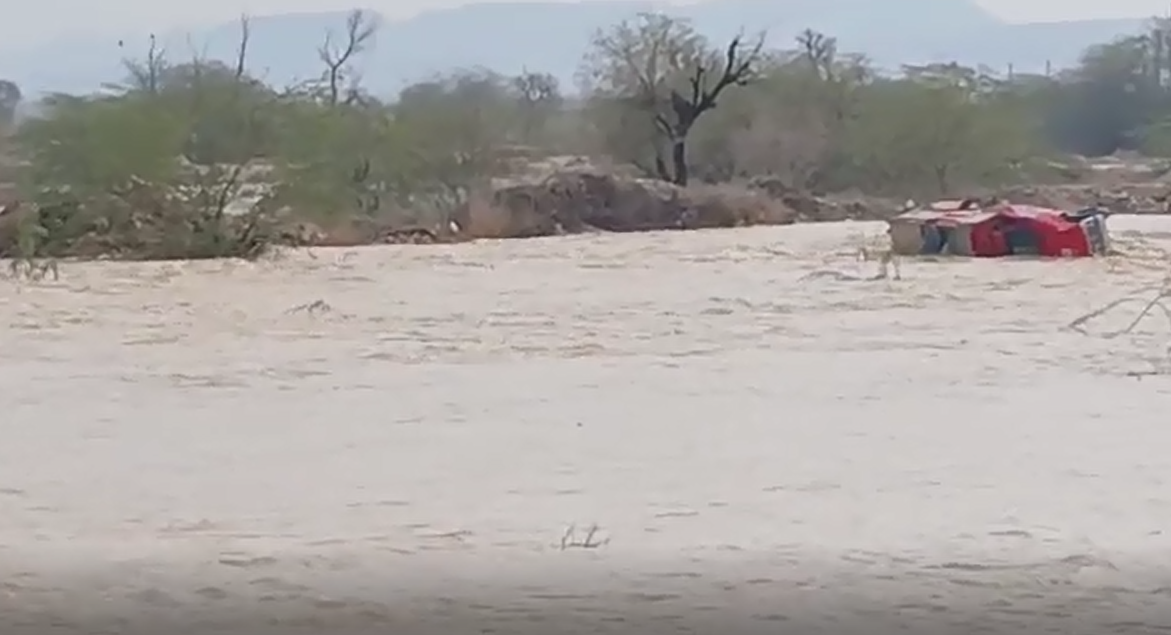 غرق شدن خودروی آتش نشانی در سیل پارسیان