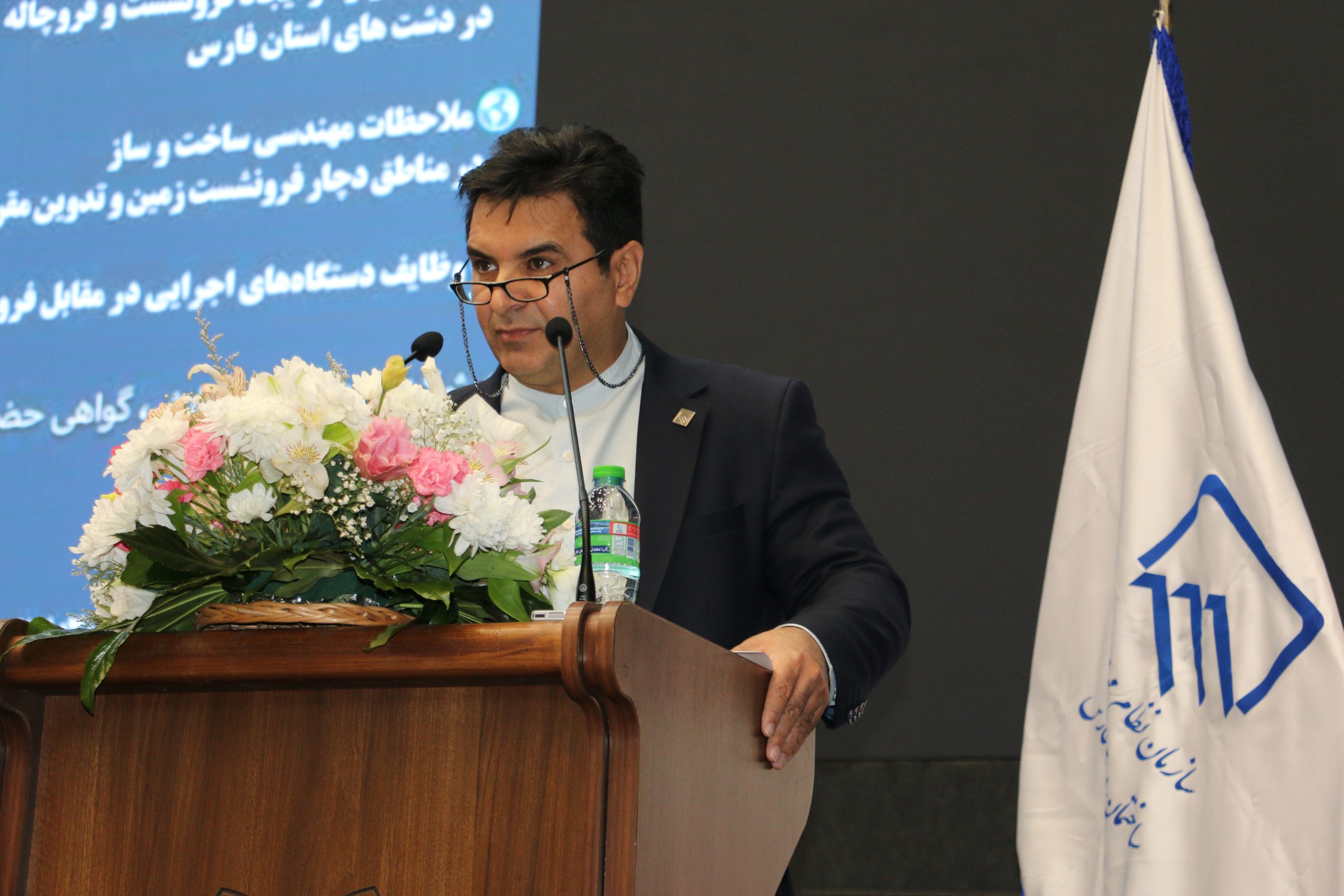 در ابتدای این مراسم، دکتر امیرحسین قیصری، رئیس سازمان نظام مهندسی ساختمان استان فارس، ضمن قدردانی از همکاری نهادهای همکار بهویژه از جناب آقای دکتر اسدی، شهردار محترم کلانشهر شیراز و مجموعه شهرداری، بر ضرورت شناسایی «حلقه های زنجیری منجر به بروز فرونشست زمین» تأکید کرد. وی با تحلیل میانگین نرخ فرونشست در سطح جهانی و ملی، وضعیت استان فارس را نگران کننده دانست و گفت: «میانگین فرونشست در استان فارس چند برابر میانگین جهانی است.»